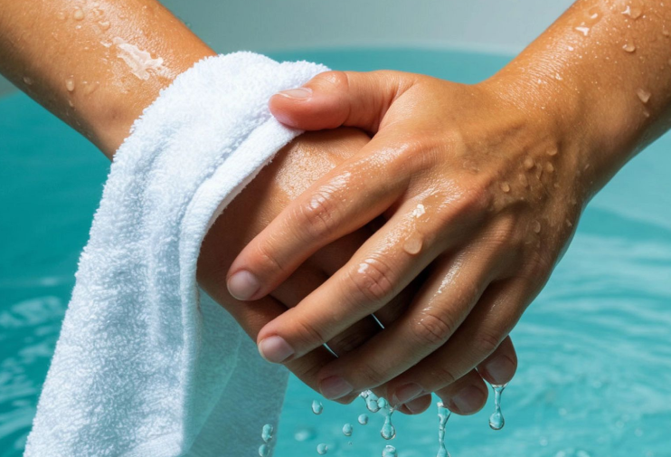 Как: Смочите полотенца в ледяной воде, отожмите. Оберните запястья, шею (сзади), щиколотки. Меняйте каждые 10-15 минут.